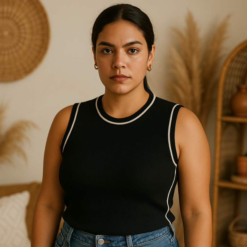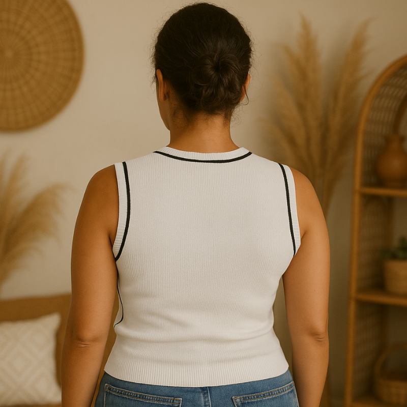 A Regata Duo Chic é aquela peça curinga que transforma o básico em elegante com um toque de atitude. Com modelagem justinha e tecido com excelente elasticidade, ela abraça o corpo com conforto, valoriza as curvas e veste com segurança. Feita em malha estruturada de viscose e poliéster, tem toque macio, não amassa com facilidade e garante zero transparência. O charme fica por conta do acabamento contrastante na gola e nas cavas ("alças") — um detalhe minimalista que eleva o visual. Ideal com jeans, alfaiataria ou saias fluídas: vai do casual ao sofisticado com praticidade e estilo.
