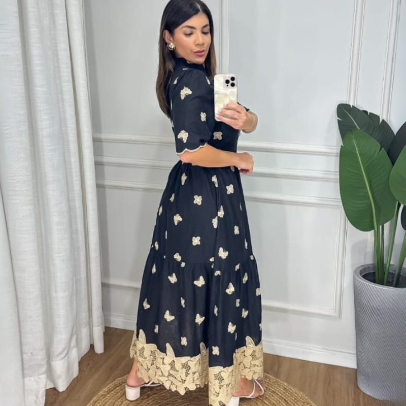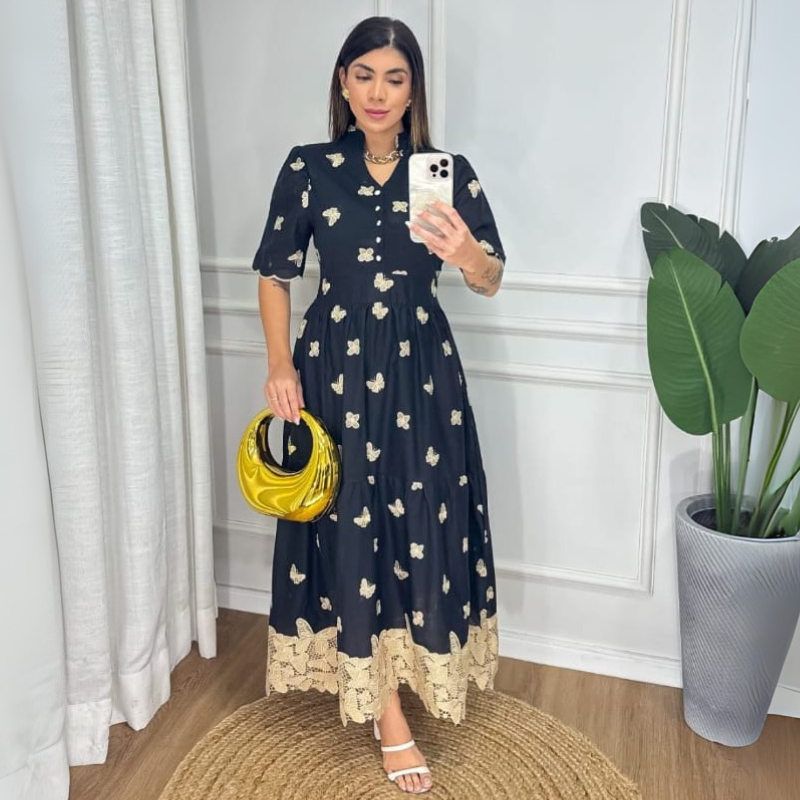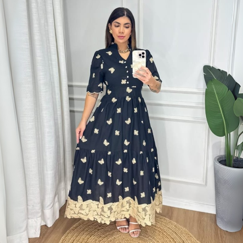 O Vestido Borboleta Isadora é uma peça versátil que transita entre o clássico e o contemporâneo. Para um visual leve e romântico, combine-o com sandálias delicadas e acessórios em tons naturais. Em ocasiões formais, ele ganha ainda mais elegância com uma clutch sofisticada, penteado preso e joias discretas. No dia a dia, pode ser usado com sapatilhas confortáveis e um cardigã leve, mantendo a proposta modesta e charmosa. Também é uma escolha perfeita para almoços em família ou celebrações especiais — basta adaptar os acessórios à ocasião e deixar que a beleza do vestido fale por si.